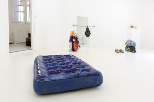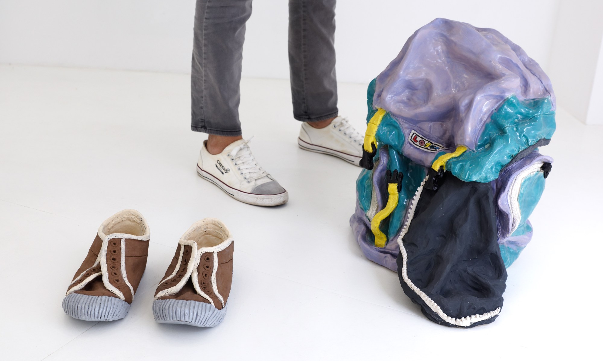 vêtements abandonnés, points de départ de ses sculptures en céramique,